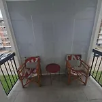 This apartment has a balcony, a living room, and a fully equipped kitchen, and comforts such as climate control.